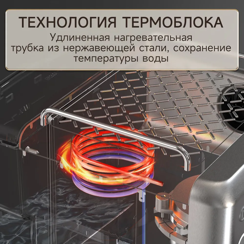 Конструкция кофеварок/кофемашин: Встроенный термометр, Дисплей, Фильтр от накипи, Противокапельная система