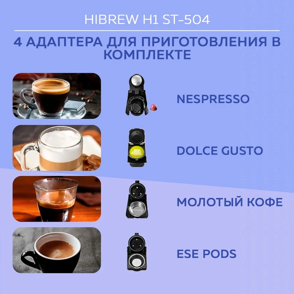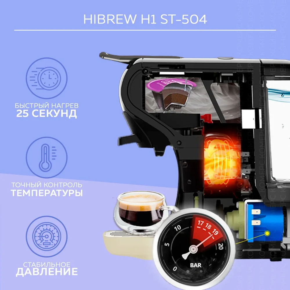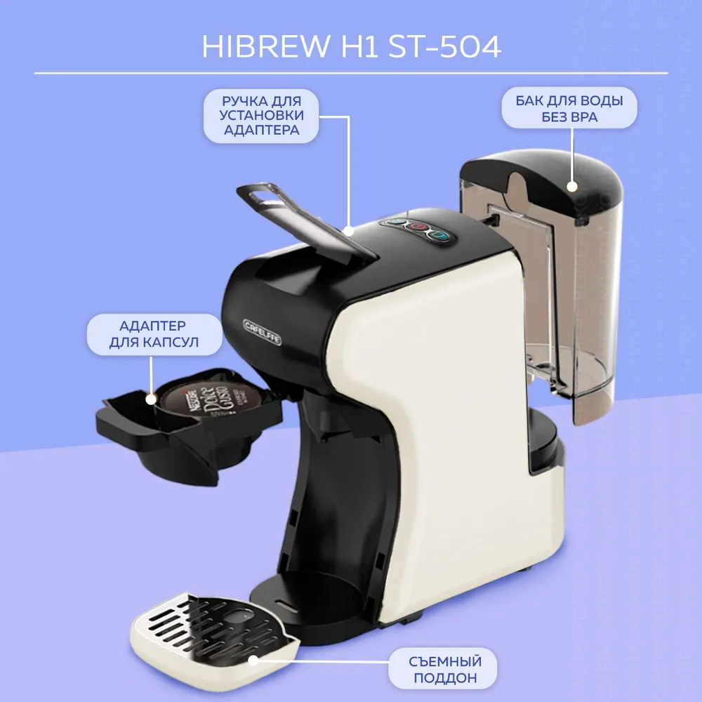 Капсульная кофеварка HIBREW ST-504 предназначена как для приготовления кофе с помощью капсул, так и молотого кофе. Она совместима с самыми распространенными типами капсул известных брендов и имеет в комплектации адаптер для молотого кофе. Широкий спектр настроек позволит приготовить чашечку крепкого вкусного кофе в соответствии с вашими предпочтениями и удовлетворит вкус даже заядлых кофеманов.