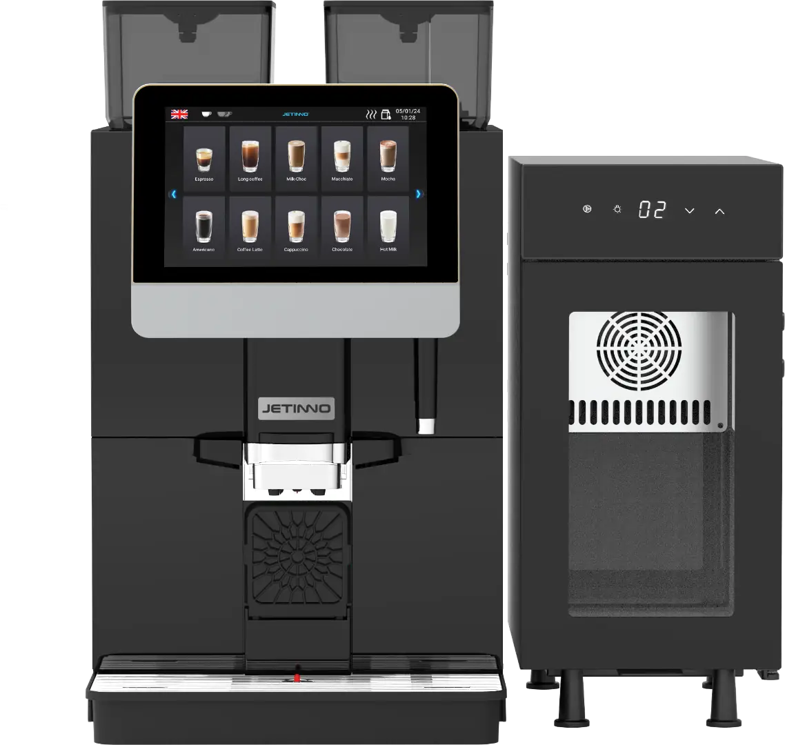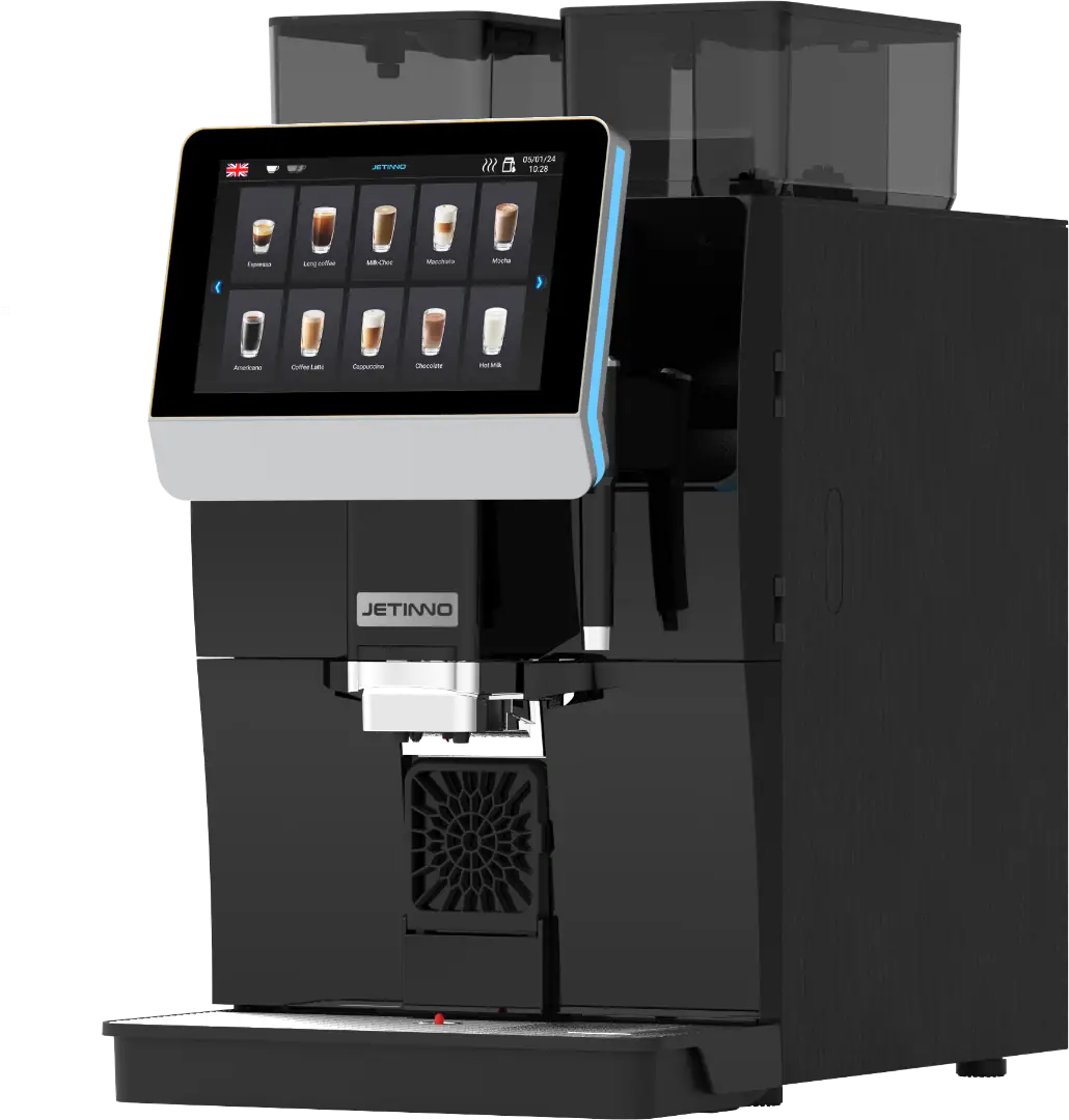 Кофемашина JL32А - Кофемашина с натуральным молоком, зерновым кофе и двумя контейнерами растворимых ингредиентов. Великолепный вкус напитков обеспечивается инновационной кофе группой и кофемолкой Jetinno, а также современной молочной системой.