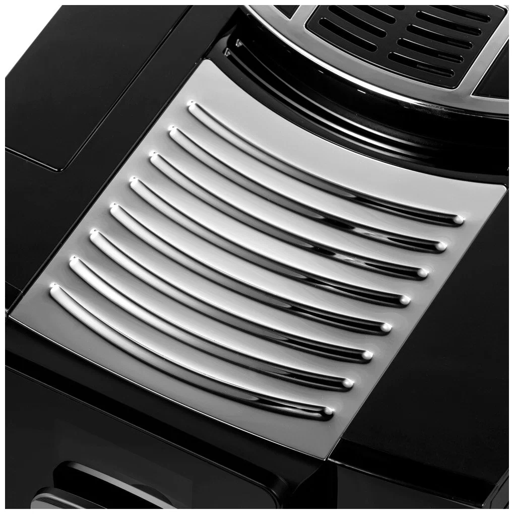 Машина может приготовить капучино с помощью одной кнопки и оснащена LCD-дисплеем и поворотным регулятором для выбора помола, крепости кофе, температуры воды, объема кофе, а также объема, температуры и текстуры молока.