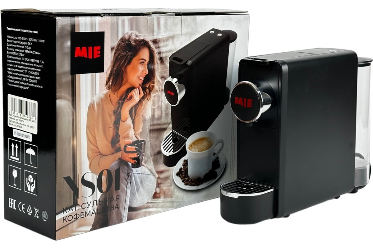 Особенности кофеаппарата MIE NS01 включают съемный поддон для капель, резервуар для воды объемом 600 мл и возможность выбора объема порции.