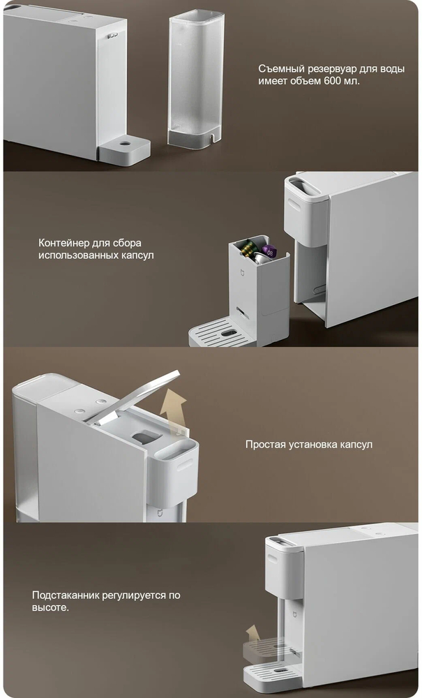 Конструкция капсульной кофемашины Xiaomi Mijia Capsule Coffee Machine White S1301