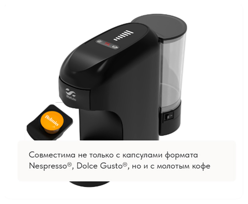 Капсульная кофемашина, подставка для чашки, решетка подставки для чашки, бак для воды, крышка бака для воды, адаптер для капсул Nespresso, адаптер для капсул Dolce Gusto, адаптер для молотого кофе, ложка-темпер, шнур питания