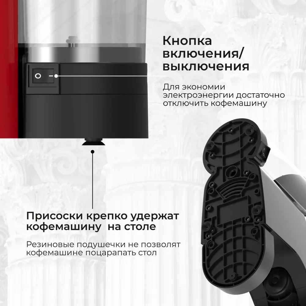 Капсульная кофемашина, подставка для чашки, решетка подставки для чашки, бак для воды, крышка бака для воды, адаптер для капсул Nespresso, адаптер для капсул Dolce Gusto, адаптер для молотого кофе, ложка-темпер, шнур питания