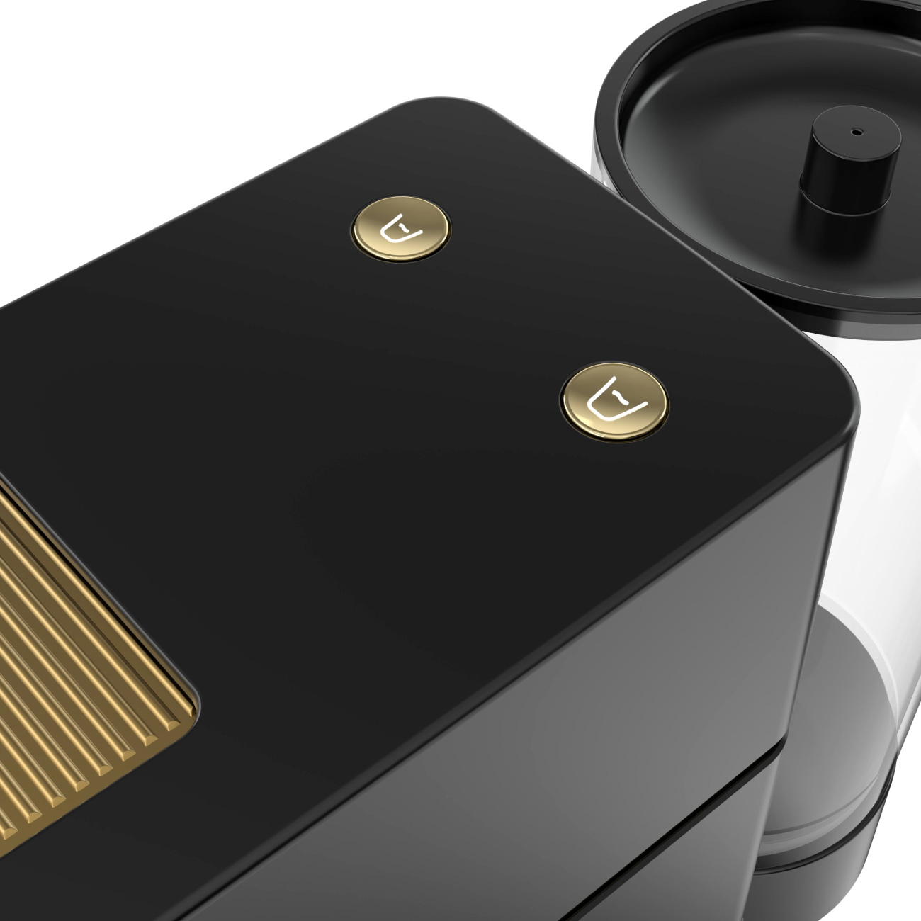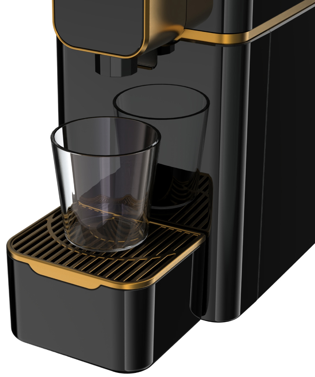 Кофемашина проста в уходе: резервуар для сбора капель, отсек для воды и насадка для капсул съёмные.