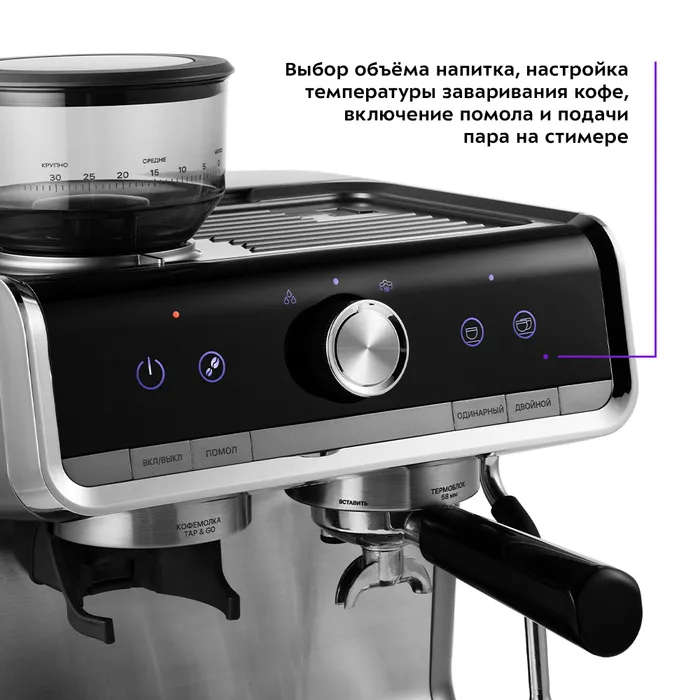 Дополнительные функции: подогрев чашек, автоотключение при неиспользовании, автоотключение после приготовления напитка