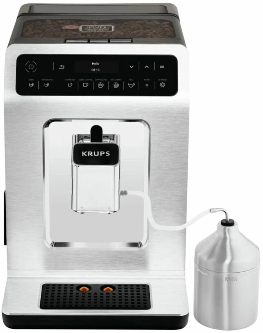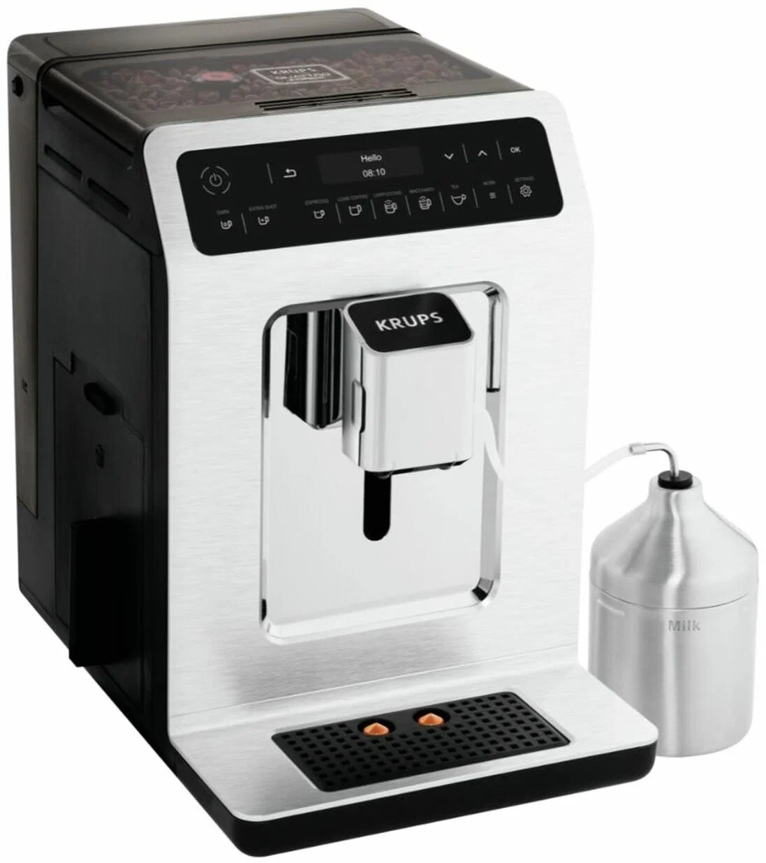 контейнер для использованного кофе на 10 порций; 3 степени помола; 3 уровня крепости, 3 температурных режима; регулировка высоты сопла подачи кофе для кружек до 158 мм; режим экономии энергии; 15 различных программ; автоматическая очистка парового сопла