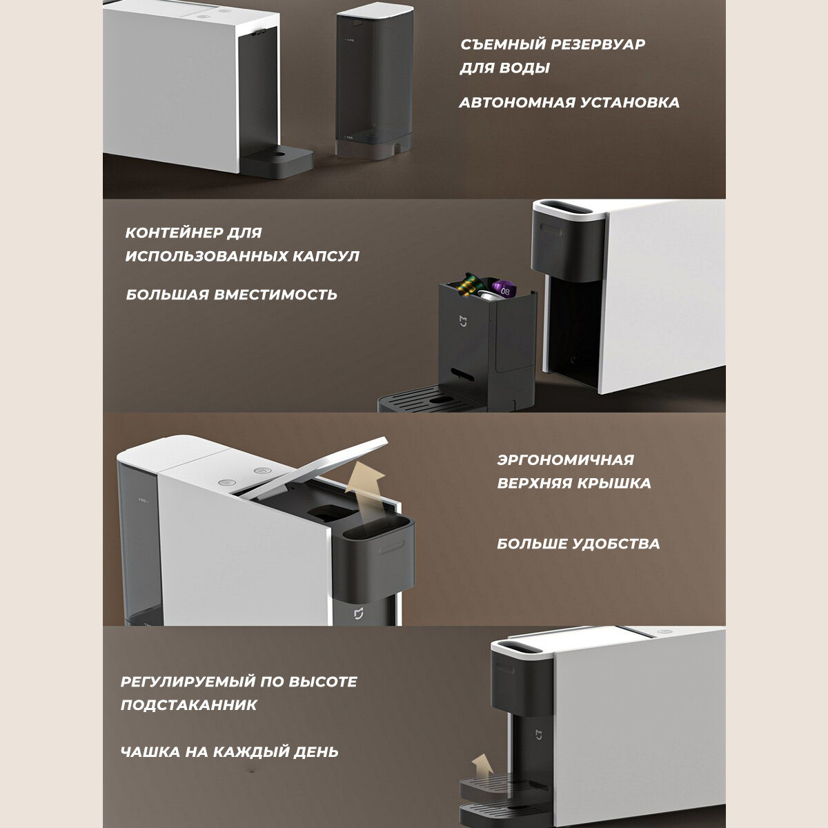 Капсульная кофеварка для приготовления американо или латте. Кофемашина Xiaomi Mijia Capsule Coffee Machine S1301 — капсульная кофеварка, способная приготовить чашку кофе всего за одну минуту.