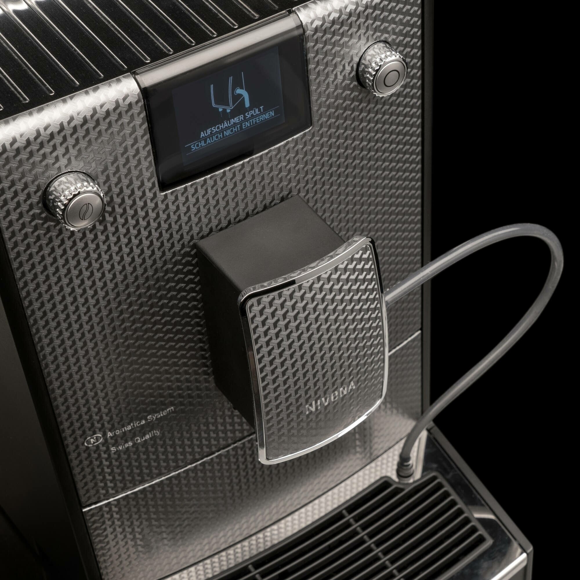 режим экономии энергии; регулируемый по высоте дозатор кофе; энергосберегающий режим; автоматические программы промывки системы; мерная ложка; 3 уровня температуры; 5 режимов крепости; охладитель для молока; контейнер для отходов на 12 порций; регулировка сопла по высоте