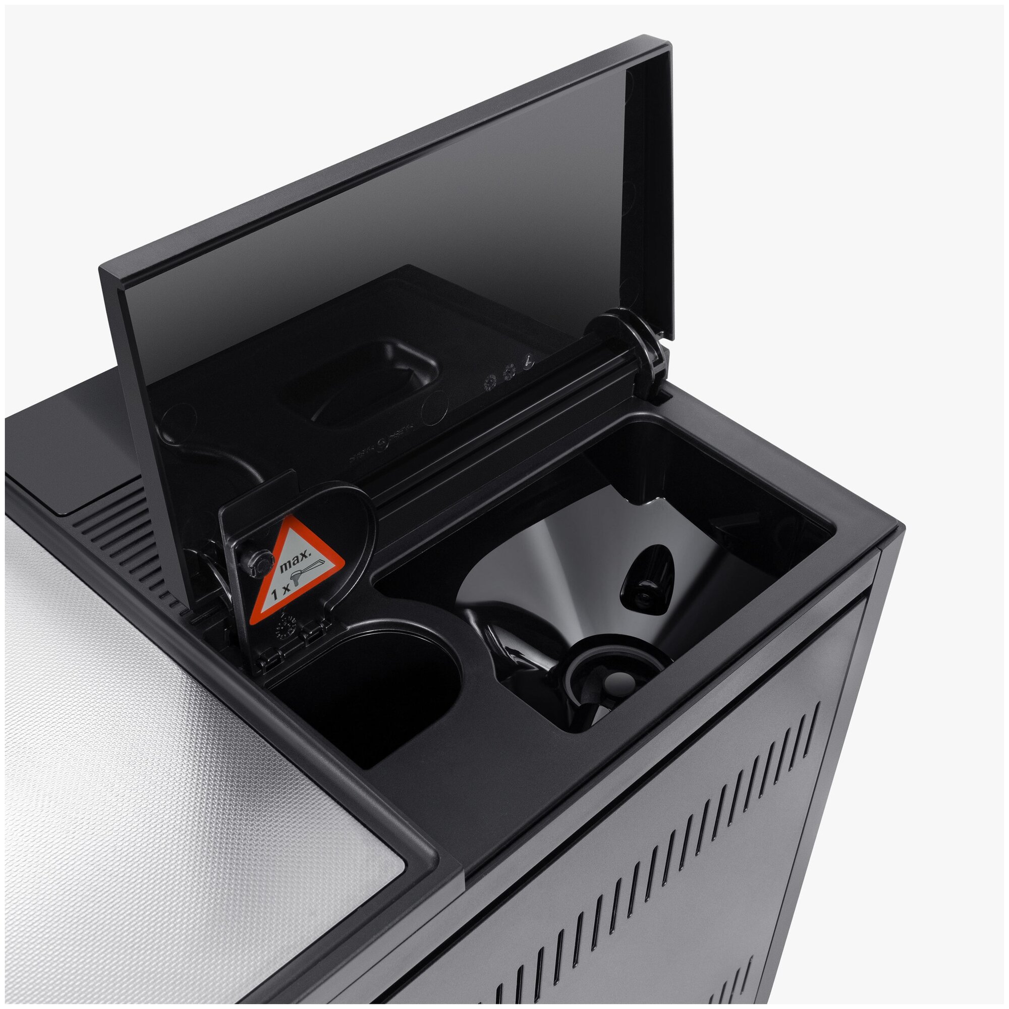 дисплей, индикатор включения, индикатор уровня воды, индикация отсутствия кофе, индикация работы, контейнер для отходов, отсек для шнура, подсветка, съемный лоток для сбора капель, Автоматический выбор рецепта, Авторегулирование времени заваривания, Индикация готовности к работе, Индикация необходимости очистки от накипи, Очистка от накипи, Режим самоочистки, Таймер, Фильтр от накипи