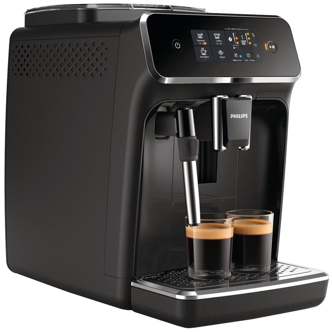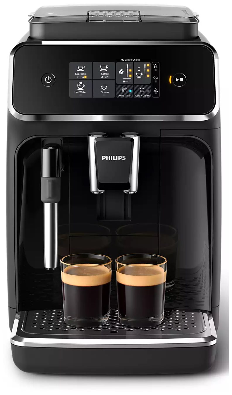 простое и быстрое удаление отходов; в комплекте: фильтр AquaClean, тюбик со смазкой, мерная ложка, тестовая полоска для проверки жесткости воды; цвет корпуса черный, коричневый; регулируемы по высоте носик 85 - 145 мм; длина сетевого шнура 1 м