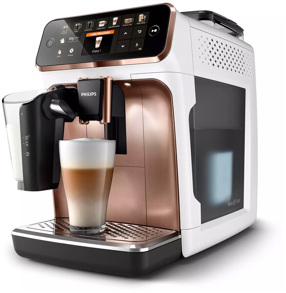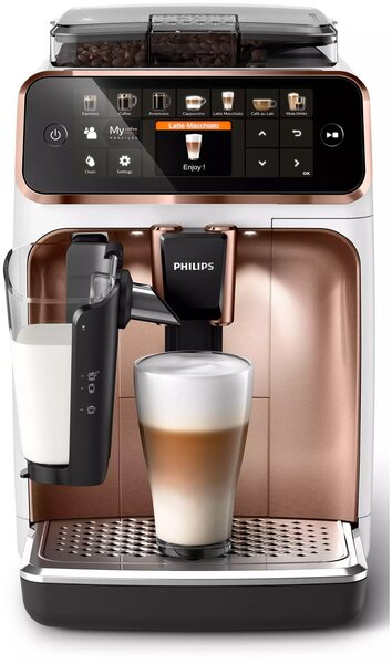 капучинатор LatteGo; простое и быстрое удаление отходов; в комплекте: фильтр AquaClean, мерная ложка, тестовая полоска для проверки жесткости воды, тюбик со смазкой; длина сетевого шнура 1 м; емкость кувшина для молока 0.26 л; 4 пользовательских профиля, в которых хранятся особые рецепты