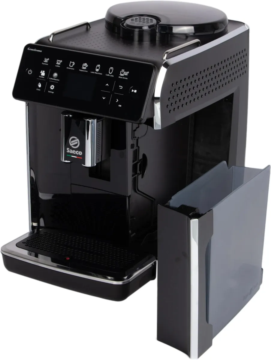 дисплей, индикатор включения, индикатор уровня воды, индикация отсутствия кофе, индикация работы, контейнер для отходов, подсветка, подсветка дисплея, съемный лоток для сбора капель, Индикация необходимости очистки от накипи, Очистка от накипи, Режим самоочистки