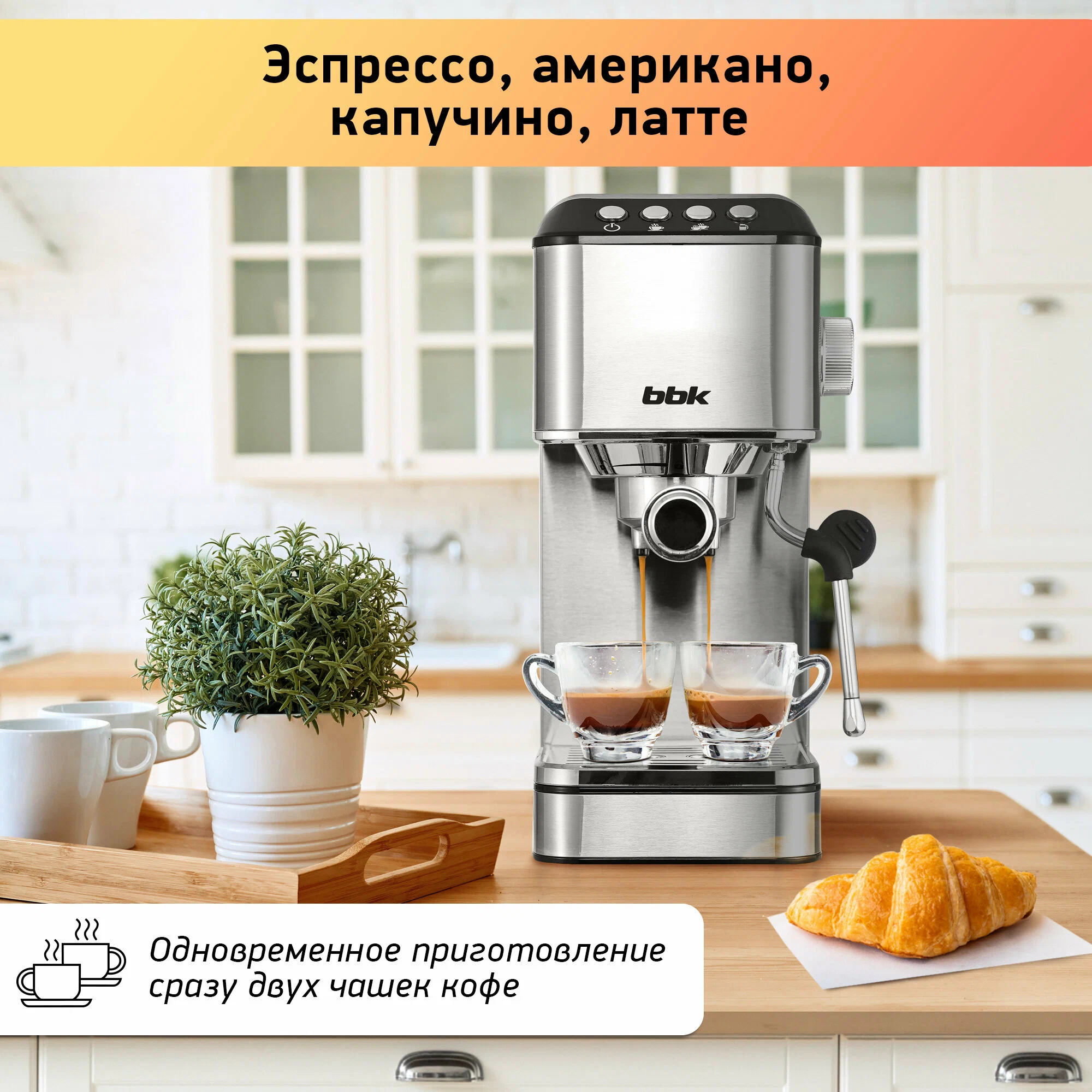 Комплектация: кофеварка, контейнер для воды, поддон для капель со съемной решеткой, фильтр для кофе, держатель фильтра (рожок), мерная ложка-пресс, руководство по эксплуатации, гарантийный талон