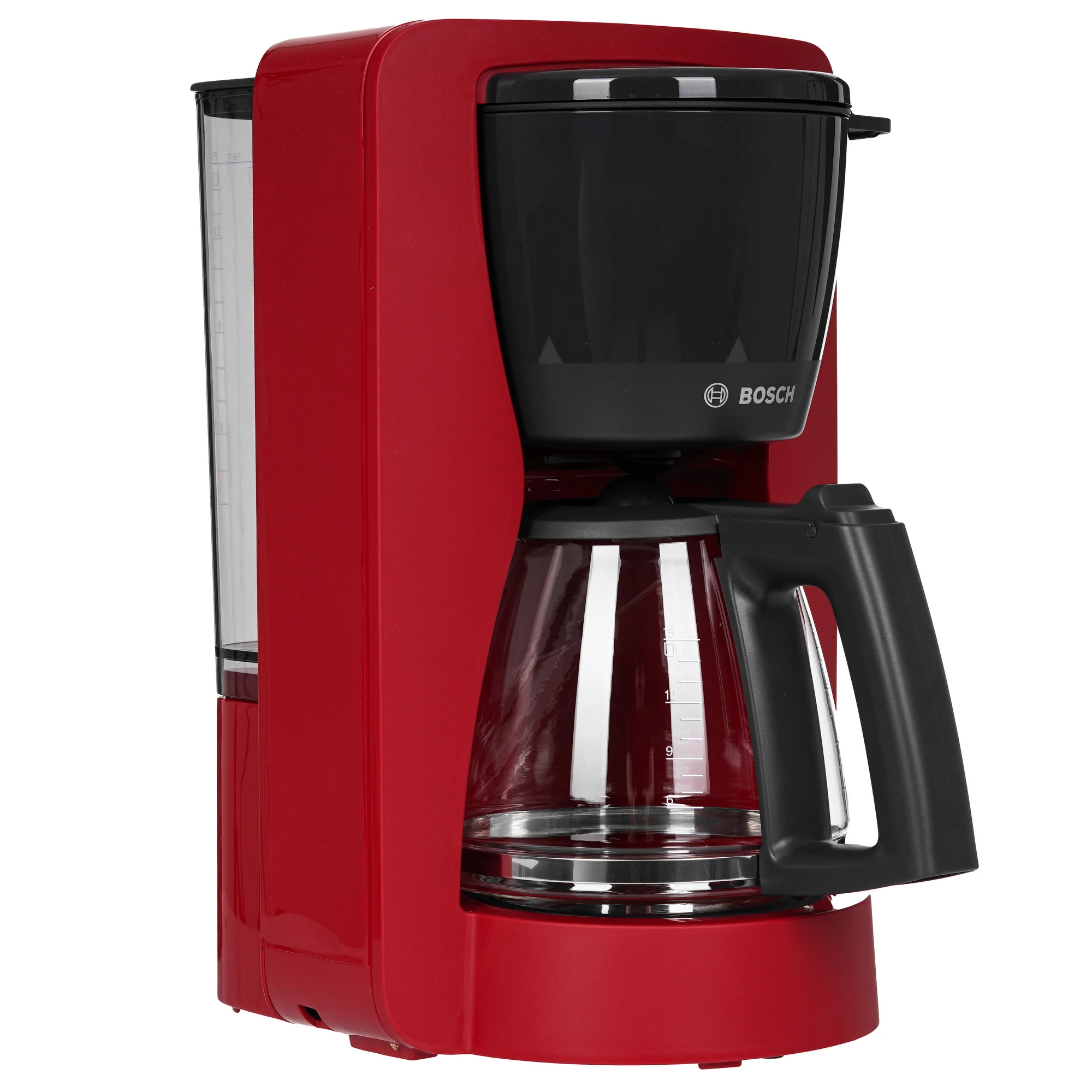 Кофеварка капельная BOSCH TKA3M134 выполнена в красном пластиковом корпусе со стеклянной колбой на 1.37 л и отметками литража для удобного расчета порций. Плита автоподогрева помогает кофе лучше раскрываться в теплой посуде и сохраняет напиток горячим. Благодаря функции автоотключения вам не нужно пристально следить за работой устройства.