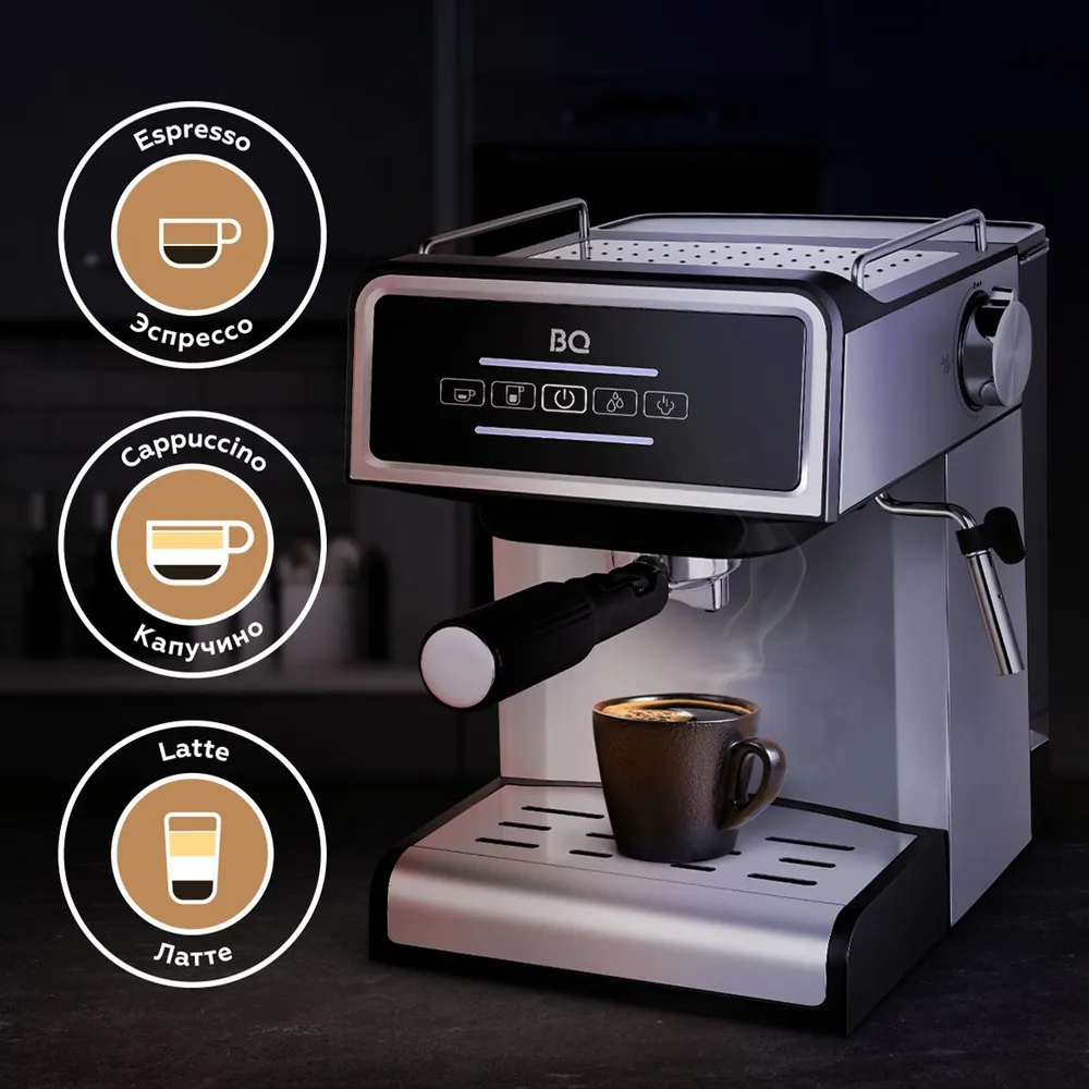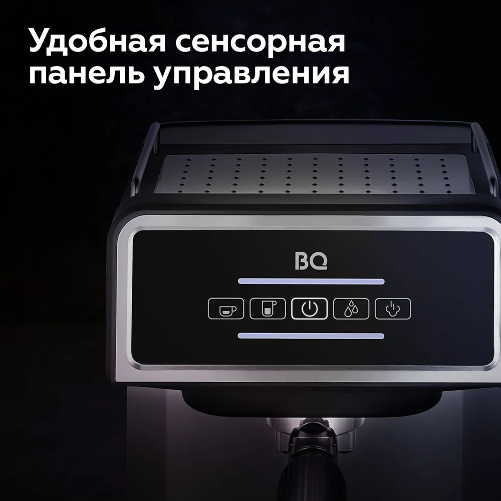 Кофеварка рожковая с капучинатором BQ CM2000 Черно-серебристая с подогревом чашек