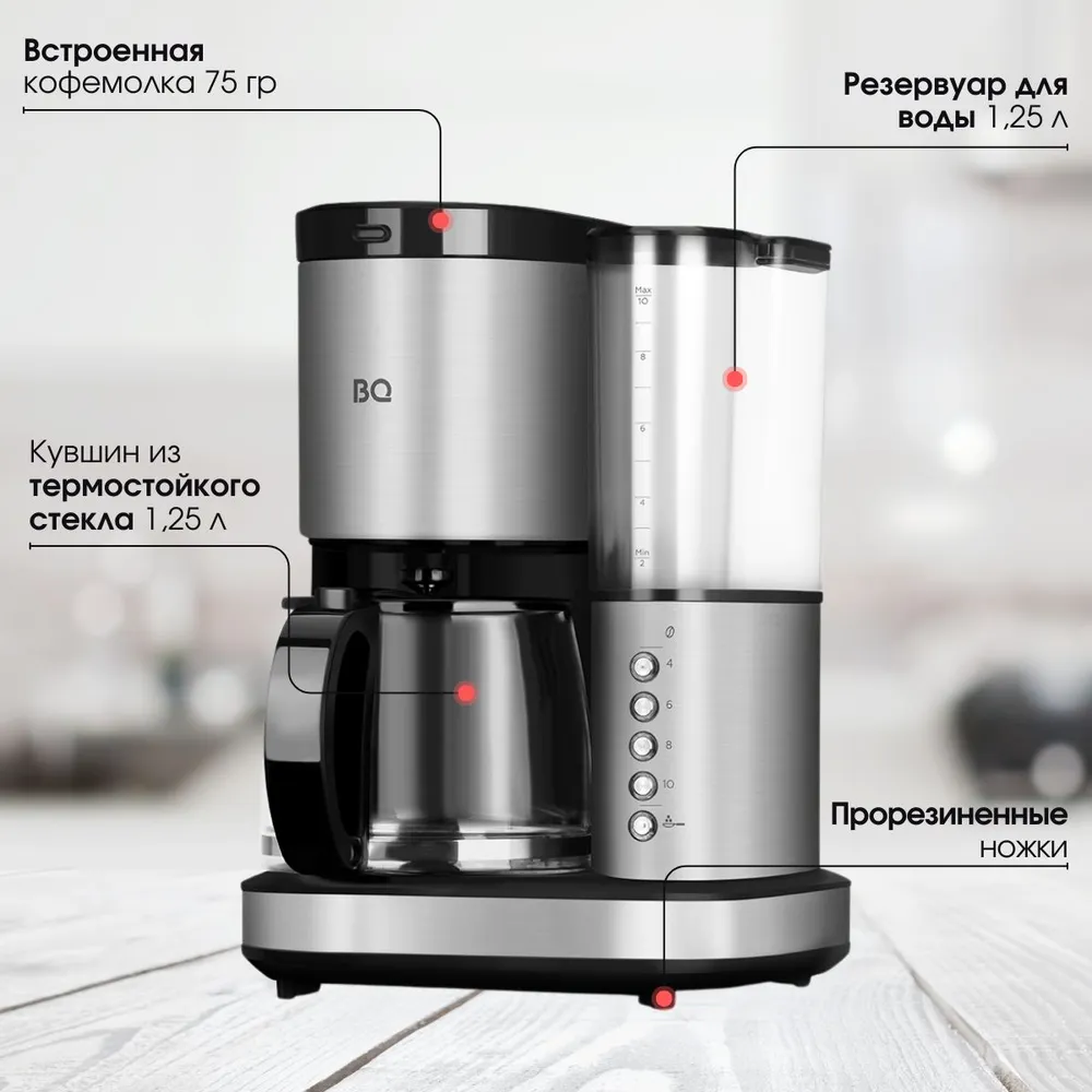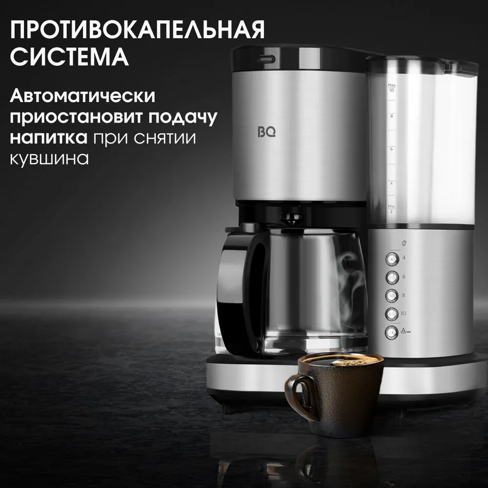 Конструкция кофеварок/кофемашин: Противокапельная система, Индикатор уровня воды, Фильтр от накипи