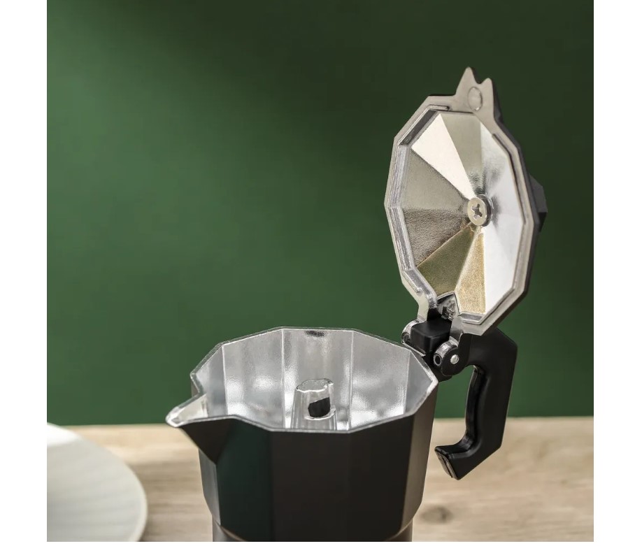 Латунный клапан для сброса избыточного давления делает использование кофеварки безопасным.