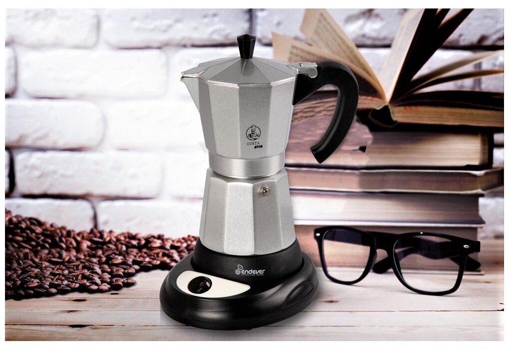 давление (бар) 1, защита от перегрева и короткого замыкания; длина шнура 0.75 м; отключение вручную после приготовления напитка, регулировка крепости кофе для 3 или 6 чашек
