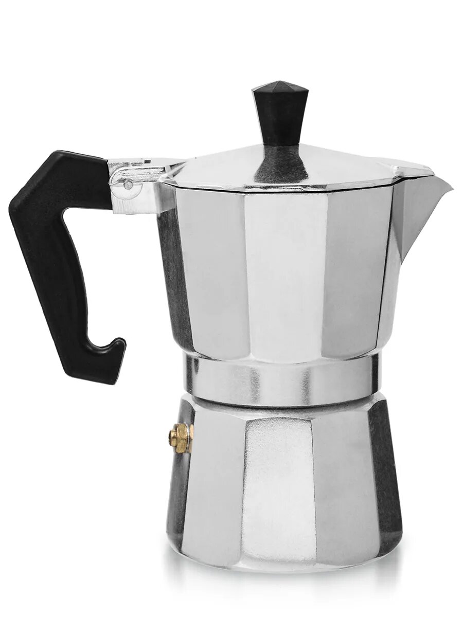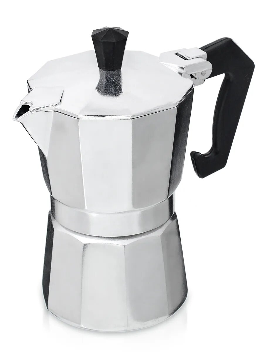 Кофеварка "Гейзер" 2 порций 150мл Классическая кофеварка-гейзер прекрасно подходит для традиционного приготовления кофе эспрессо и будет ежедневно радовать Вас ароматным бодрящим кофе. Кофеварка изготовлена из гигиенически безопасного металла, эргономичная ручка из жароупорного пластика, ручка не обжигает руки и снабжена силиконовой прокладкой. Подходит для газовых, электрических и стеклокерамических плит. Не подходит для мытья в посудомоечной машине.