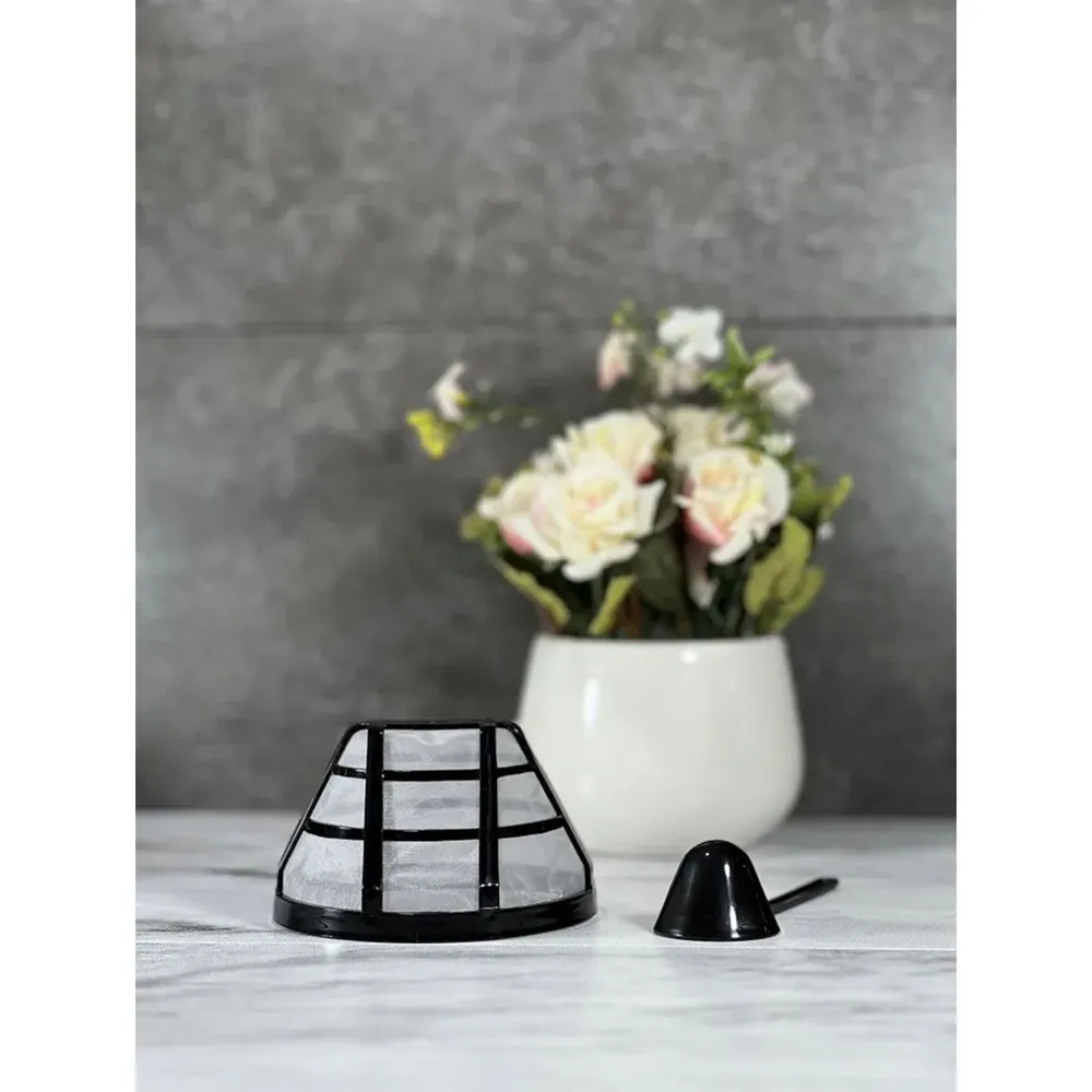 В комплекте: съемный фильтр, съемный кофейник, колба кофейника из термостойкого стекла, мерная ложечка.