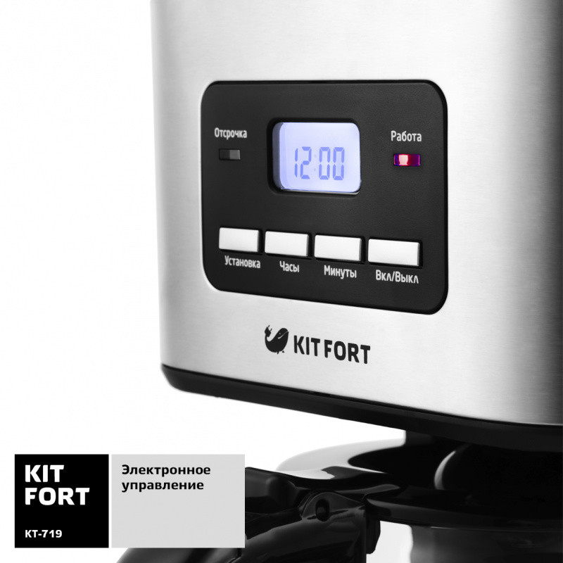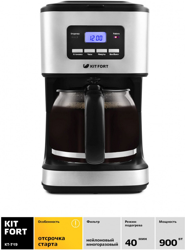 Особенности: Многоразовый нейлоновый фильтр, время приготовления 1 чашки 3-5 мин., подогрев до 40 мин., автоотключение.