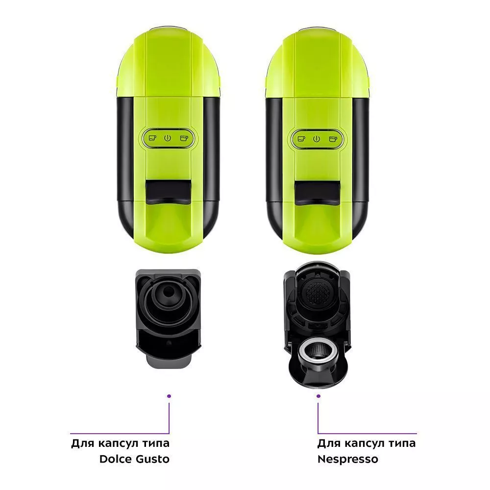 Благодаря 3 адаптерам, которые входят в комплект, кофеварка подходит для капсул типа Nespresso и Dolce Gusto, а также для молотого кофе. Она прекрасно совмещает в себе все преимущества каждого типа кофеварок и готовит под давлением 19 бар.