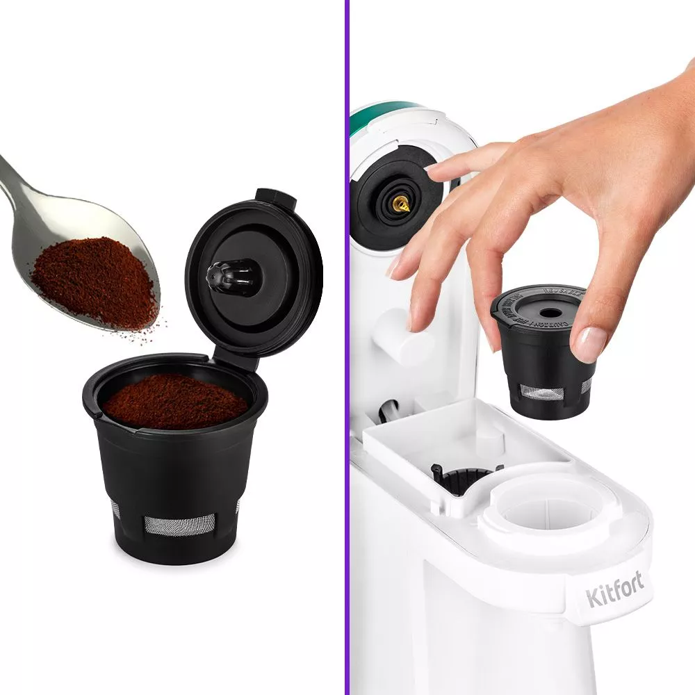 Кофеварка КТ-7122 поможет приготовить кофе, чай или какао в капсулах. Вы можете приготовить любой кофейный напиток на основе эспрессо. Для КТ-7122 вы можете использовать одноразовые капсулы стандарта K-Cup или многоразовую капсулу из комплекта.