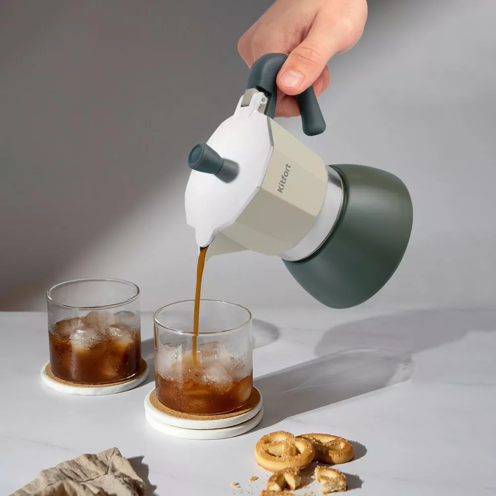 Гейзерная кофеварка КТ-7150 поможет приготовить вам ароматный чёрный кофе.