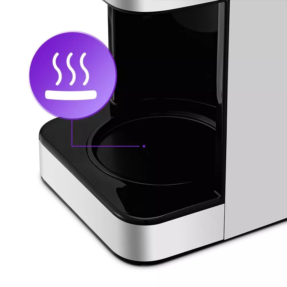 В месте установки кофейника находится платформа для подогрева. По завершении приготовления кофе включается подогрев. Общее время приготовления и подогрева составляет 40 минут, затем прибор автоматически выключится.