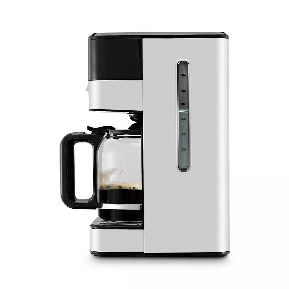 Управление кофеваркой осуществляется при помощи кнопок на панели управления. На дисплее отображаются выбранный режим, а также текущее время или время подогрева. Функция отложенного старта позволит начать приготовление кофе в заданное время.