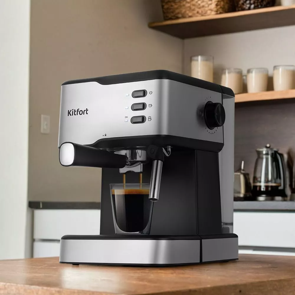 Рожковая кофеварка КТ-7233 поможет приготовить кофе эспрессо, капучино или латте, а также множество других видов кофе на ваш вкус. С помощью стимера в рожковой кофеварке вы можете подогреть паром остывший чай или молоко, приготовить молочную пенку.