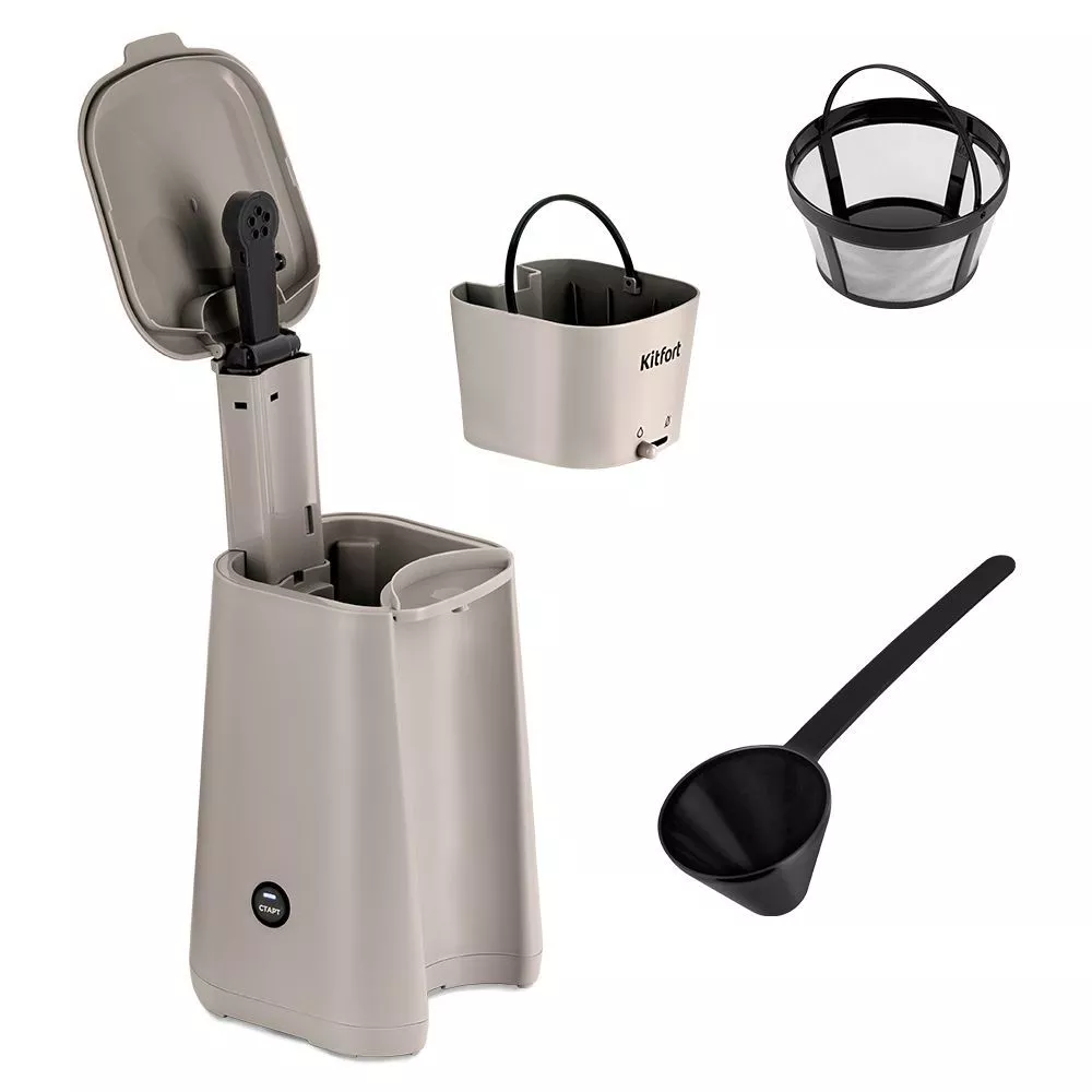 Капельная кофеварка КТ-7252 удобно разбирается для быстрого ухода – так прибор легко поддерживать в чистоте. Фильтр и воронку важно очищать после каждого использования. В комплекте также идёт мерная ложка.
