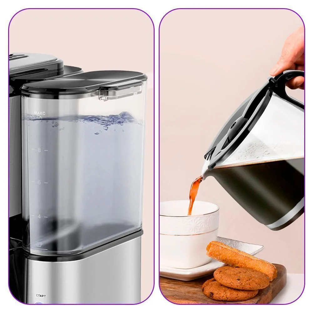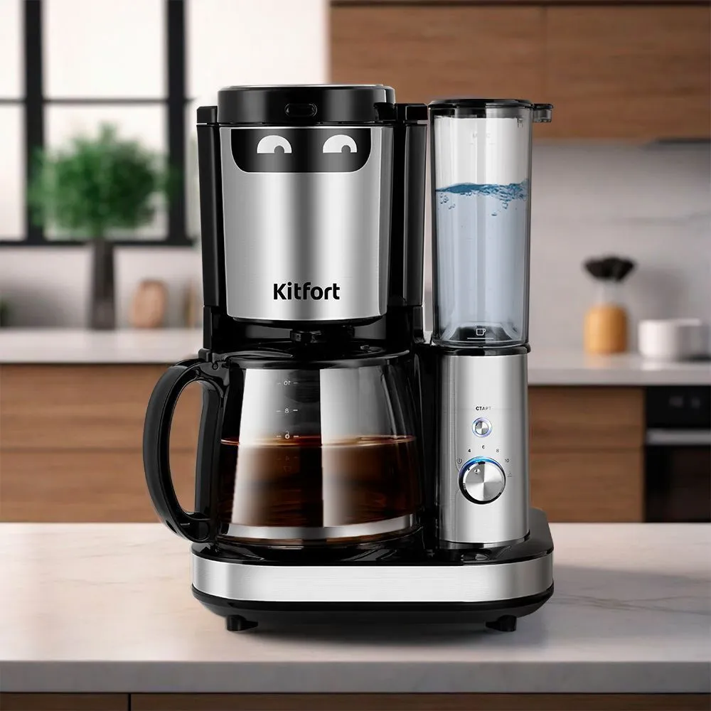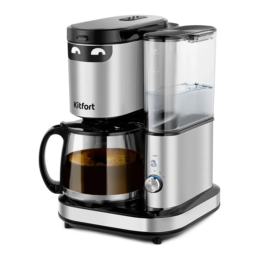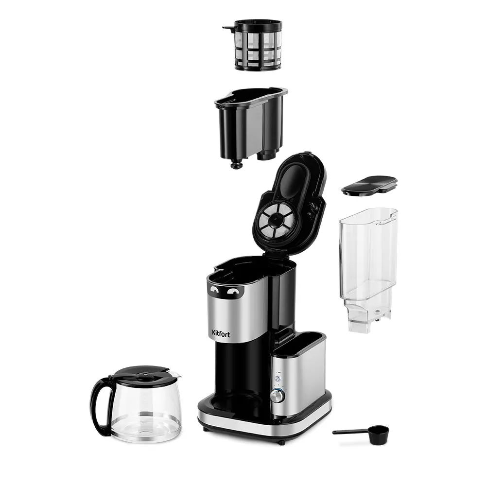 Капельная кофемашина КТ-7285 готовит ароматный чёрный кофе из молотого кофе или из кофейных зёрен. Встроенная роторная кофемолка автоматически измельчит кофейные зёрна сразу в фильтре.