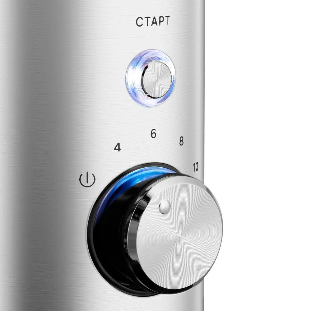 Управление осуществляется при помощи кнопки «Старт» и регулятора на панели управления. При помощи регулятора выбирается количество кофе для помола кофейных зёрен или приготовление кофе из молотого кофе. Всего у регулятора 6 разных положений.