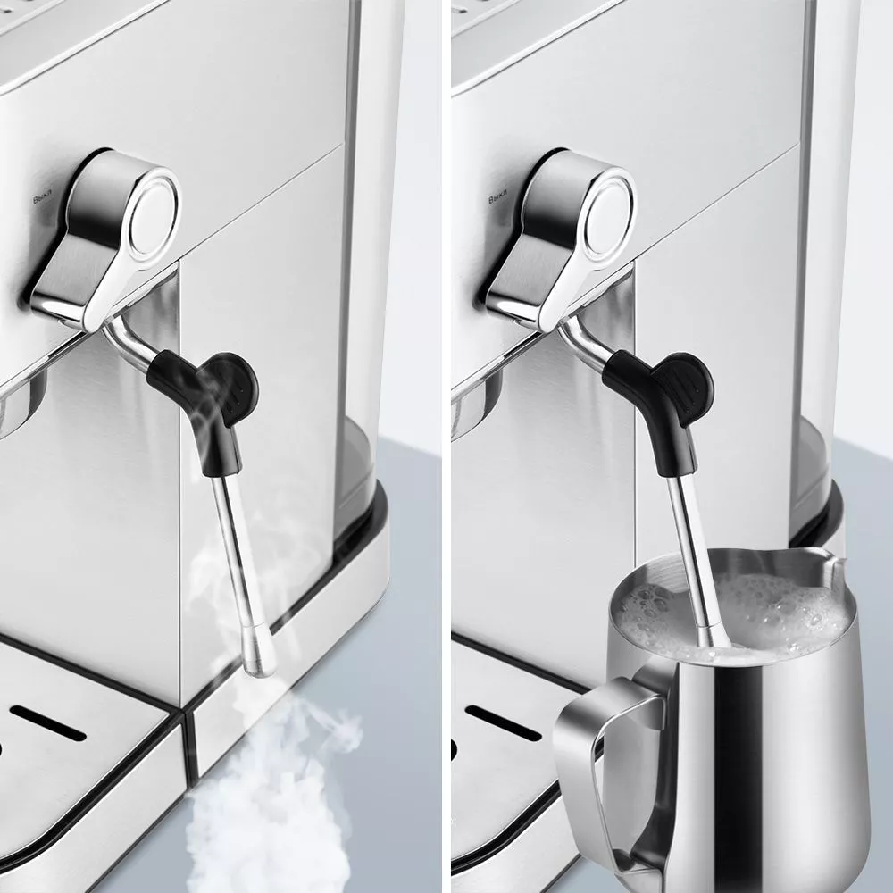 Для подачи пара и горячей воды в кофейной станции есть паровая трубка – стимер. Стимер погружают в холодное молоко, включают подачу пара и взбивают молочную пенку. С помощью стимера вы также можете подогреть остывший чай или молоко.