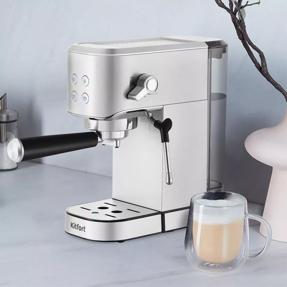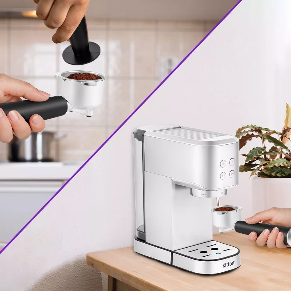 Рожковая кофеварка КТ-7294 поможет приготовить кофе эспрессо, капучино или латте, а также множество других видов кофе на наш вкус. Рожковая кофеварка — отличный выбор для гурманов, желающих ежедневно наслаждаться полным букетом вкуса свежего кофе.