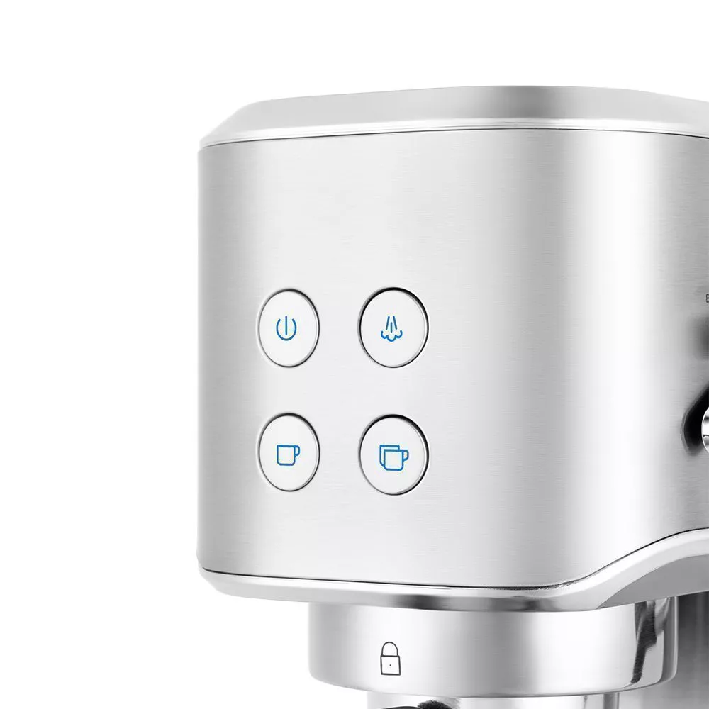 Кнопка «Вкл/Выкл» запускает нагрев бойлера. Чтобы начать приготовление эспрессо, нажмите на кнопку «Эспрессо» или «Двойной эспрессо» в зависимости от желаемого объёма напитка. Кнопка «Пар» включает нагрева бойлера для подачи пара.