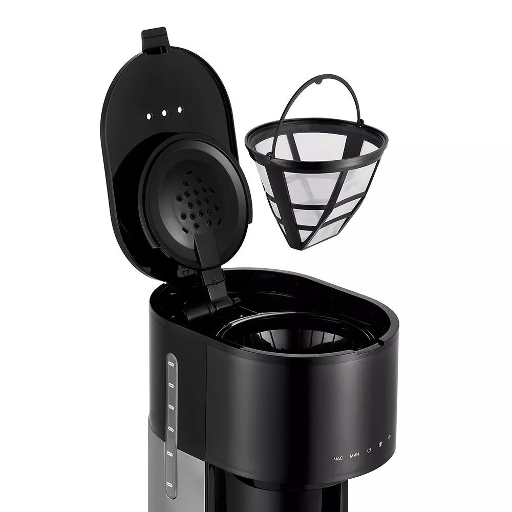 Кофеварка оснащена многоразовым нейлоновым фильтром, который удобно мыть после приготовления кофе и использовать снова.