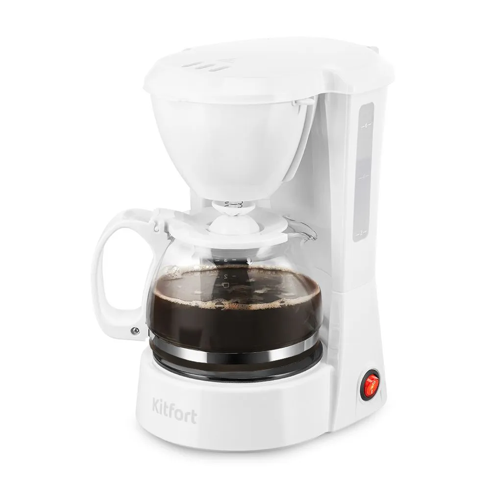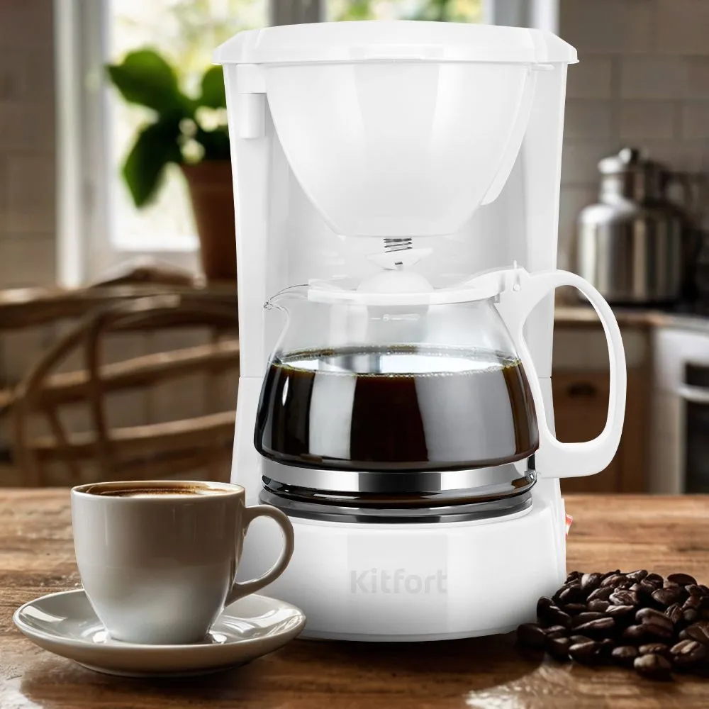 Капельная кофеварка КТ-7327 готовит ароматный чёрный кофе из молотого кофе. Управление кофеваркой очень простое и осуществляется при помощи одного переключателя.