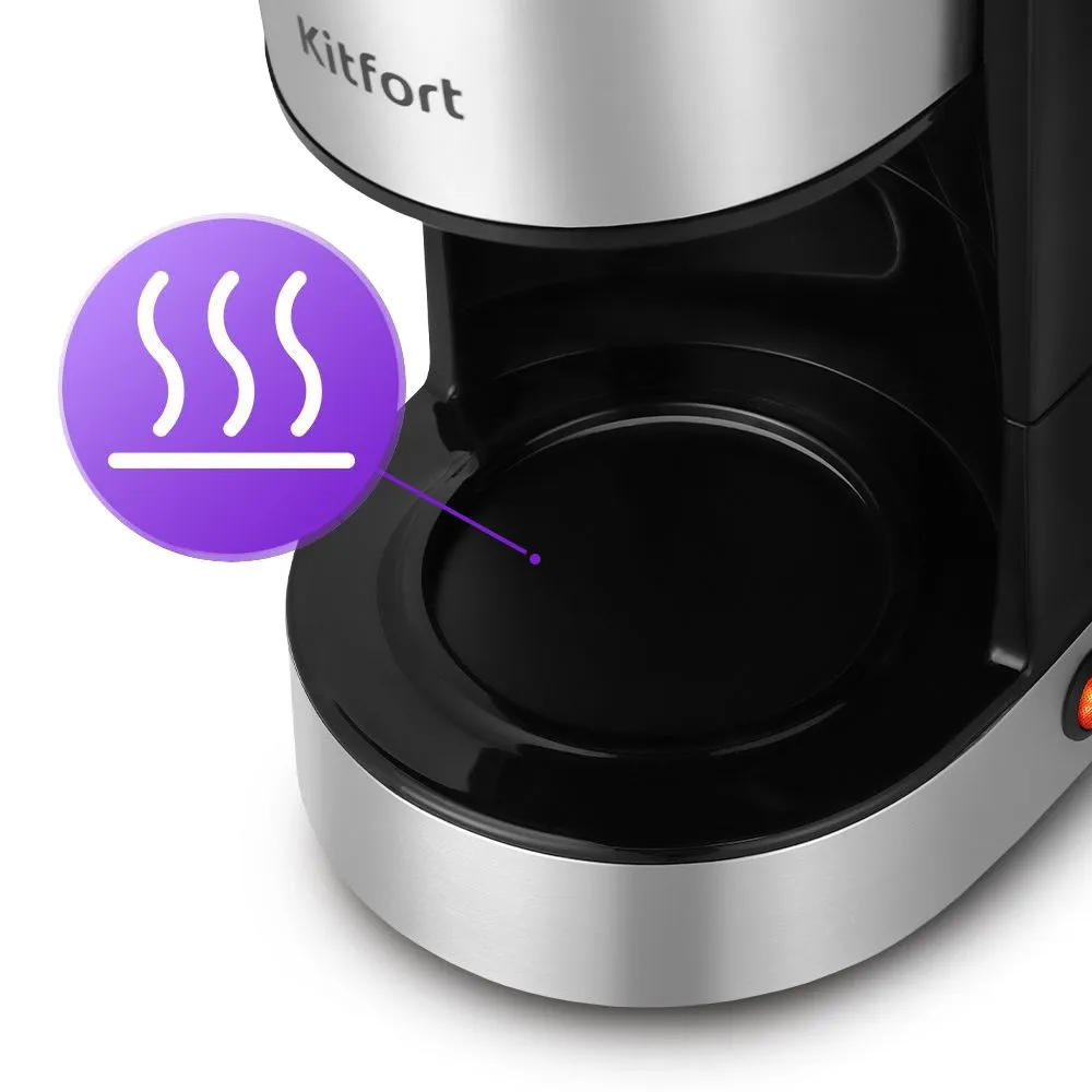 При включении КТ-7329, включается нагревательный элемент, расположенный под платформой. Он нагревает воду, поступающую из резервуара, и платформу для подогрева. По завершении приготовления кофе платформа продолжит нагреваться.