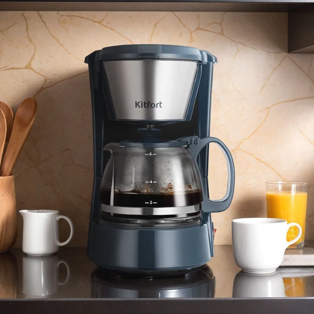 Капельная кофеварка КТ-7376 готовит ароматный чёрный кофе из молотого кофе.