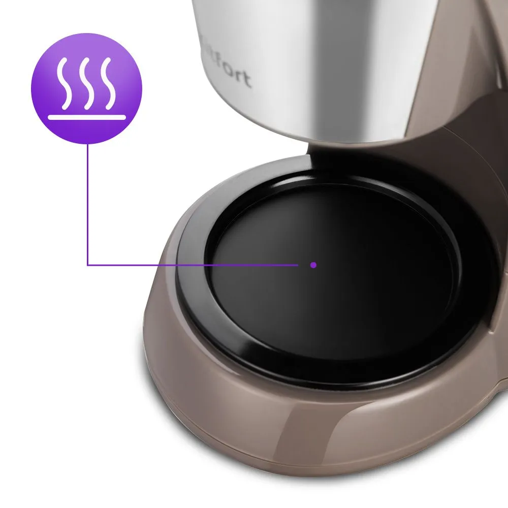 В месте установки кофейника находится платформа для подогрева. При работе кофеварки, включается нагревательный элемент, расположенный под платформой. Благодаря остаточному теплу платформа подогревает напиток в кофейнике некоторое время после выключения.