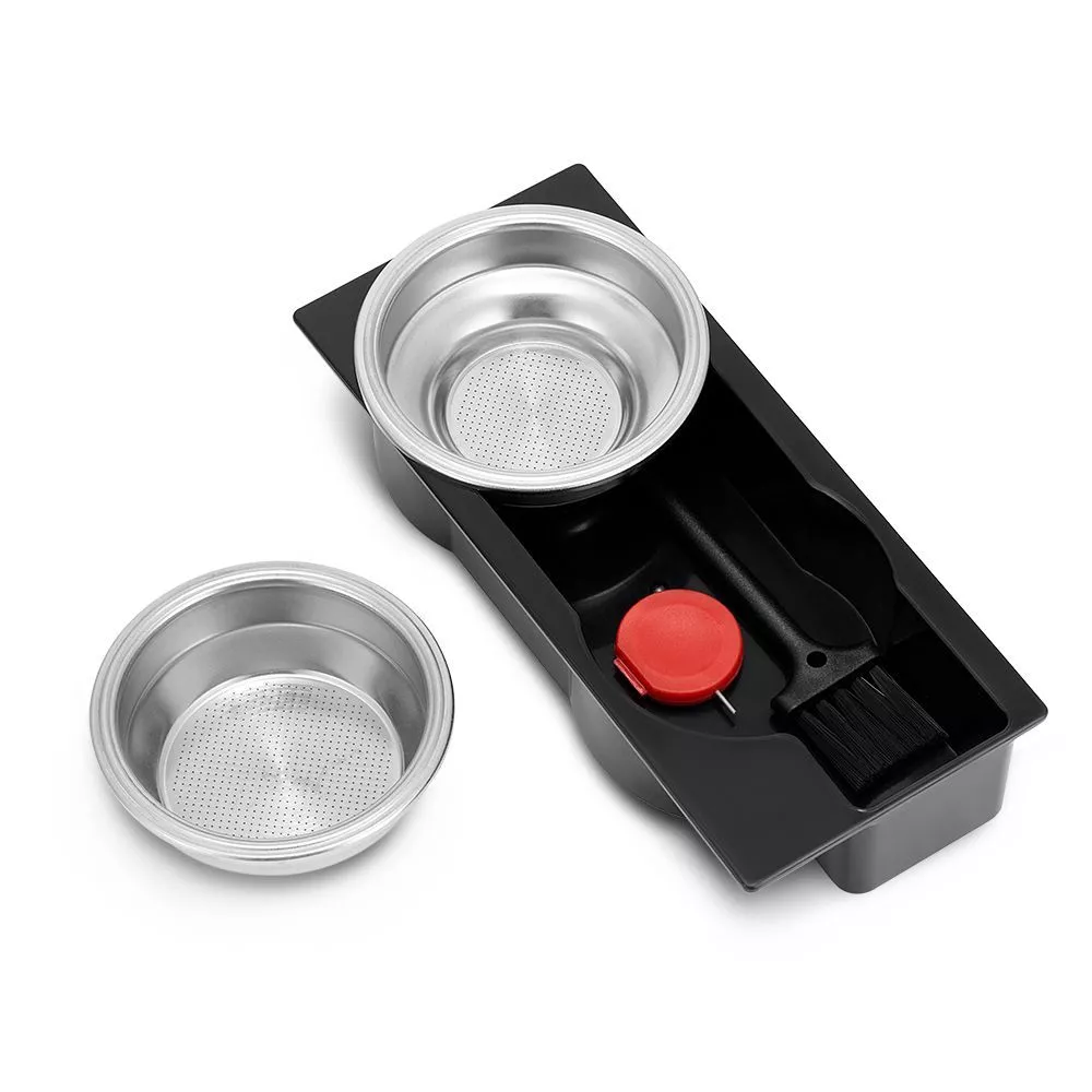 В кофейной станции предусмотрен контейнер для аксессуаров: щётки для чистки, иглы для чистки, фильтров. Контейнер располагается в корпусе кофейной станции за поддоном. Чтобы достать контейнер для аксессуаров, необходимо сначала снять поддон.