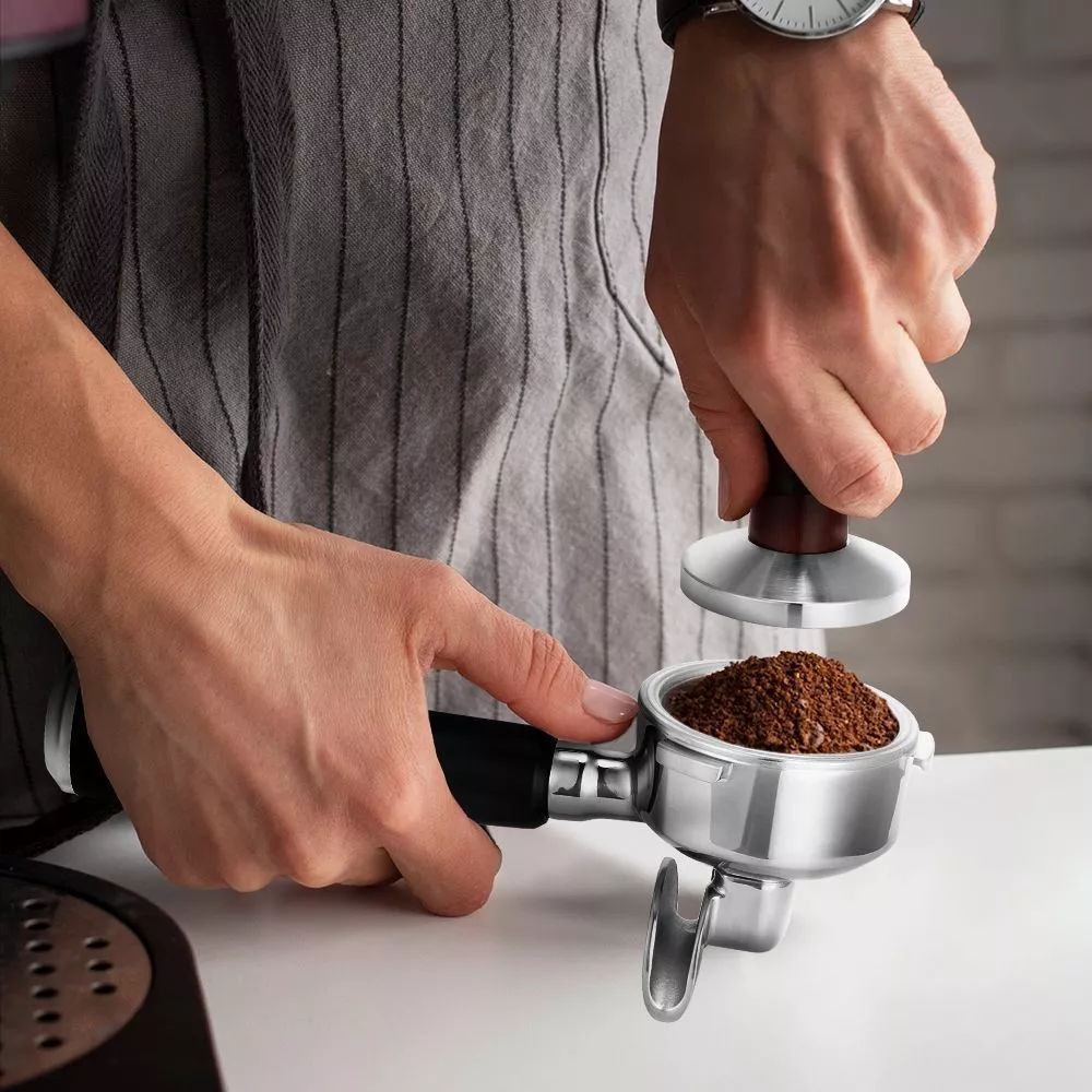 Ключевым отличием кофейной станции от всех остальных кофейных устройств является наличие рожка, его часто называют холдер. Молотый кофе помещается в фильтр рожка и прессуется в таблетку. Процесс трамбовки также называют темперовкой.