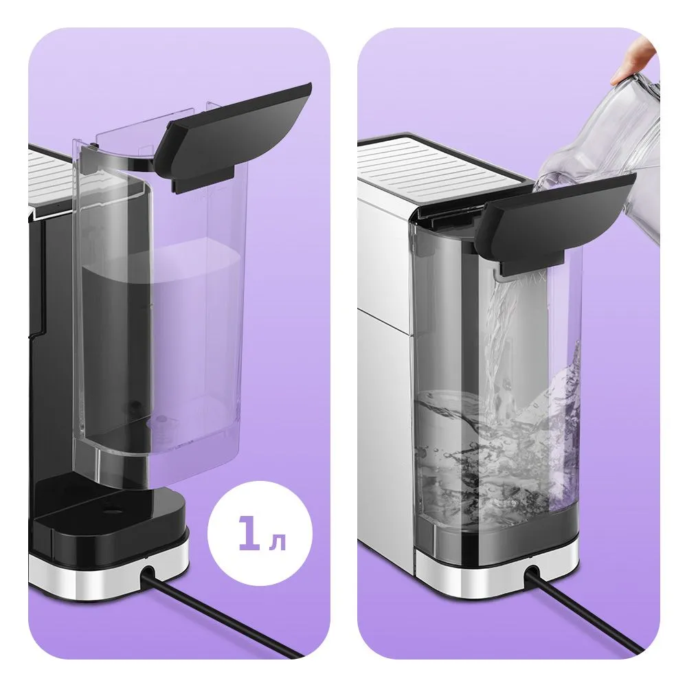 Резервуар для воды ёмкостью 1 литр съёмный — его можно легко снять и наполнить водой в любом удобном месте. Также можно заливать воду в резервуар, не снимая его.