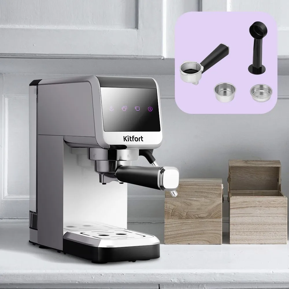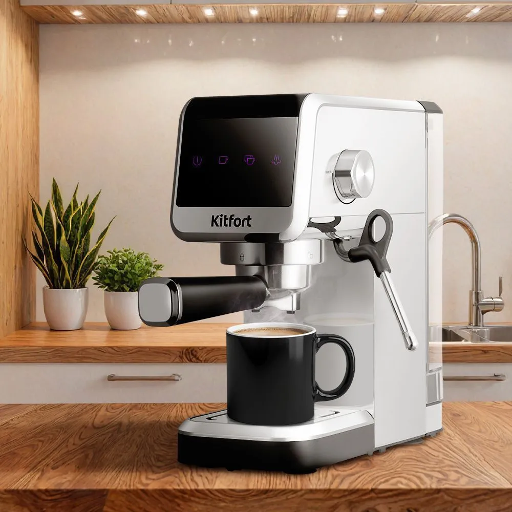 Рожковая кофеварка КТ-7419 объединяет в себе профессиональное приготовление кофе, простоту в обращении и стильный дизайн. С ней вы легко приготовите ваш любимый эспрессо, капучино или латте