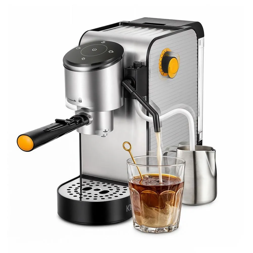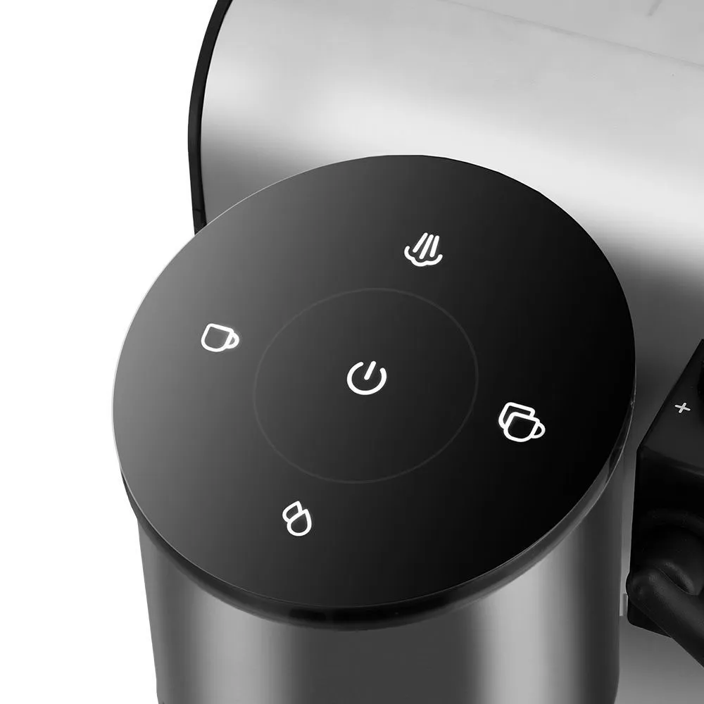 Управление осуществляется с помощью сенсорных кнопок: «Вкл/Выкл» включает и отключает нагрев кофеварки, «Эспрессо» и «Двойной эспрессо» включают приготовление эспрессо, «Горячая вода» включает режим подачи горячей воды, «Пар» включает режим подачи пара.
