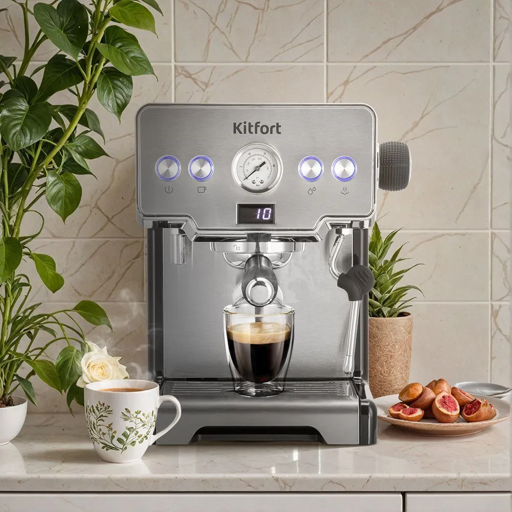 КТ-7530 – это высококлассная кофемашина, которая имеет уникальный метод подачи пара для кофемашин. Сначала – выбираете нужную порцию эспрессо, а потом вспениваете молоко и – вуаля – капучино, латте или другой кофейный напиток готов!