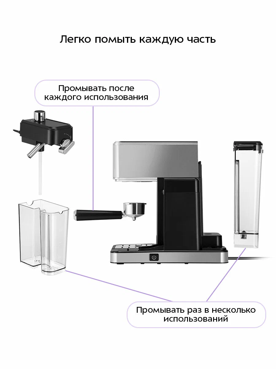автоотключение при неиспользовании, одновременное приготовление двух чашек, подогрев чашек